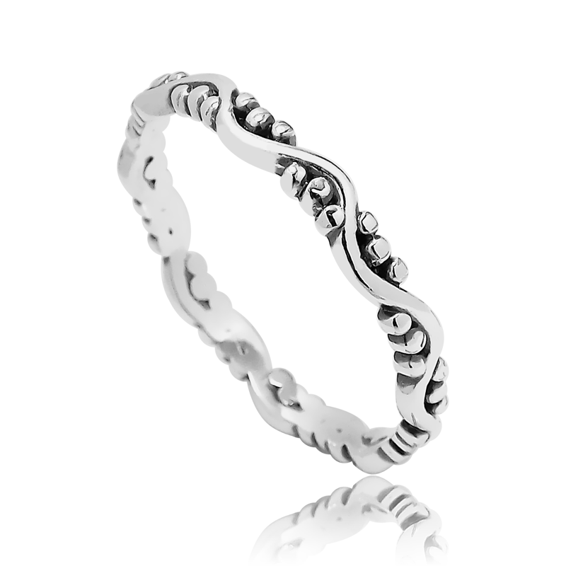 anel em prata com detalhes de mini bolinhas